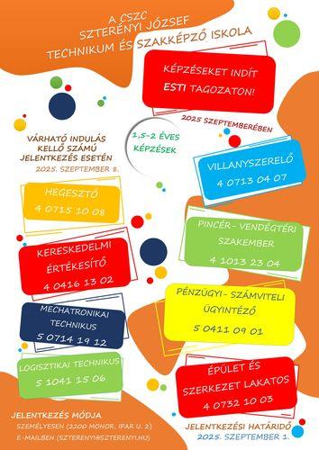 Iskolánk 1,5 éves szakképző iskolai és 2 éves technikumi szakmai képzéseket indít esti tagozaton!
